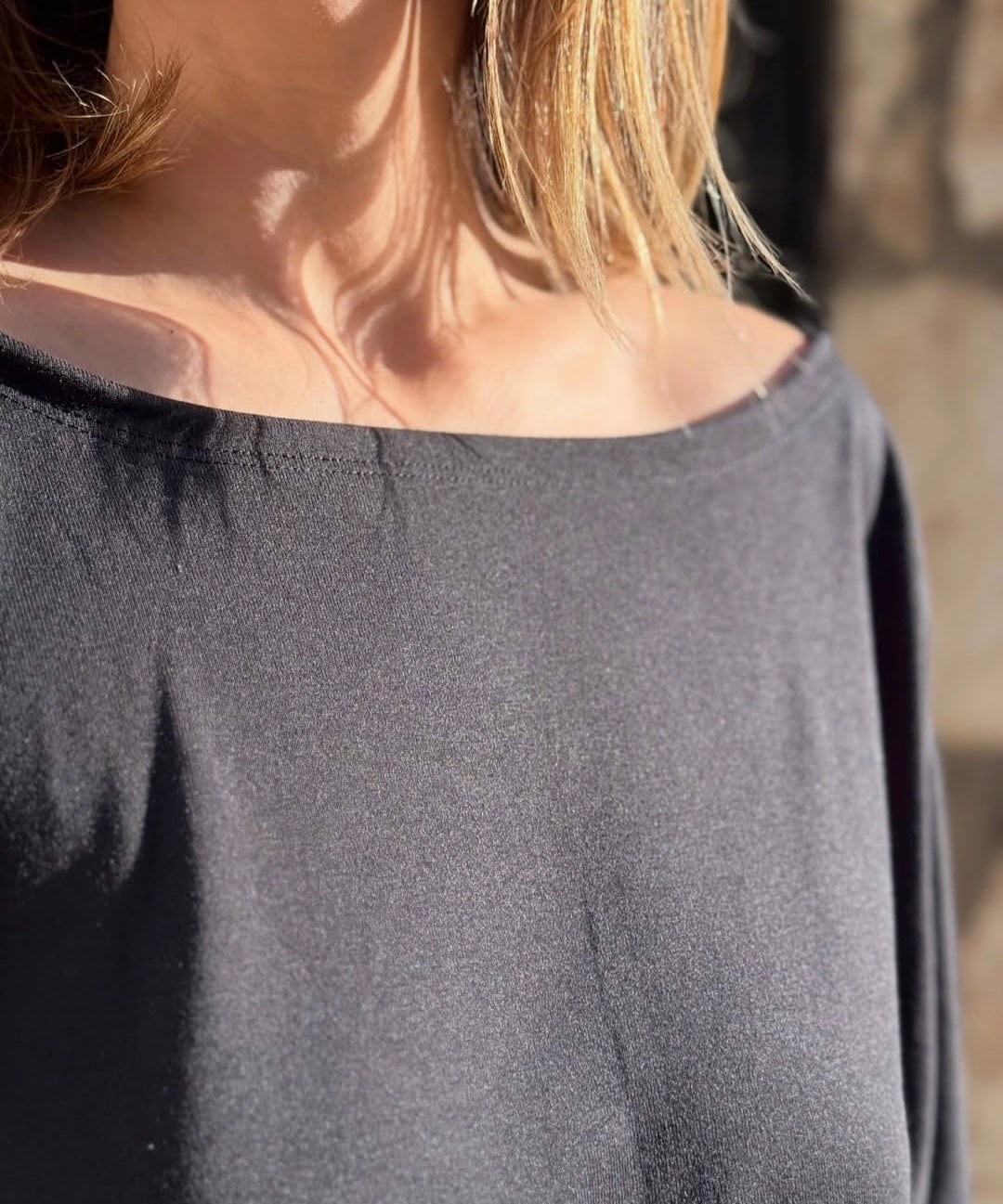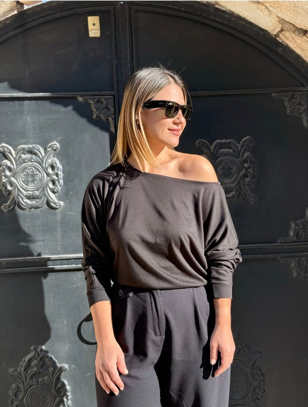Siyah Renk Omuz Detaylı Penye  Bluz.
