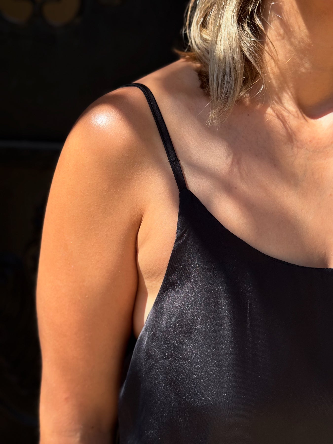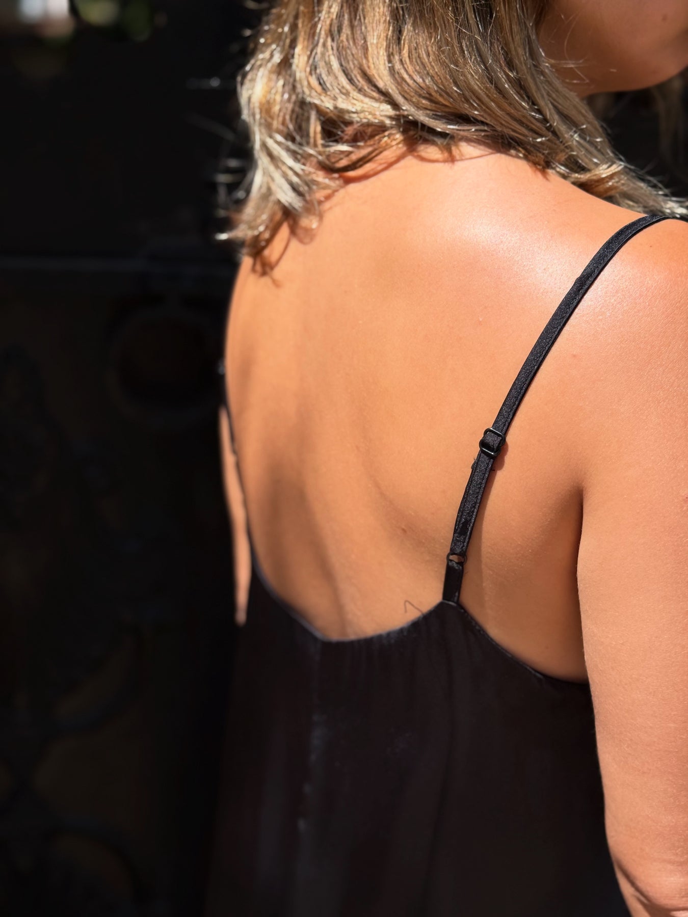 Siyah Saten Askılı Elbise