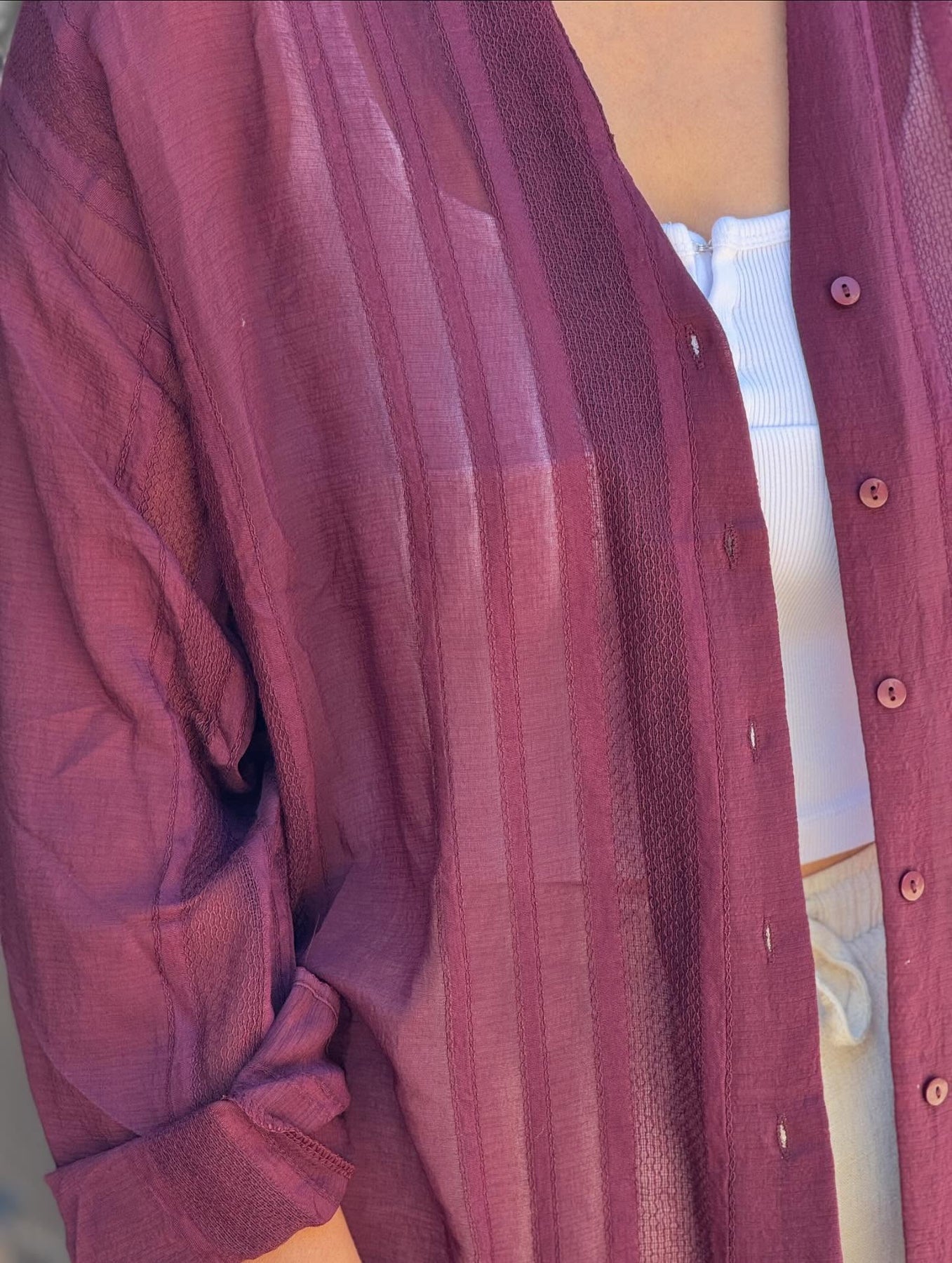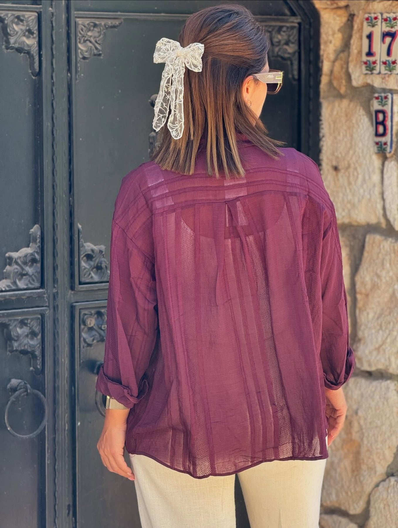 İthal Mürdüm Transparan Gömlek