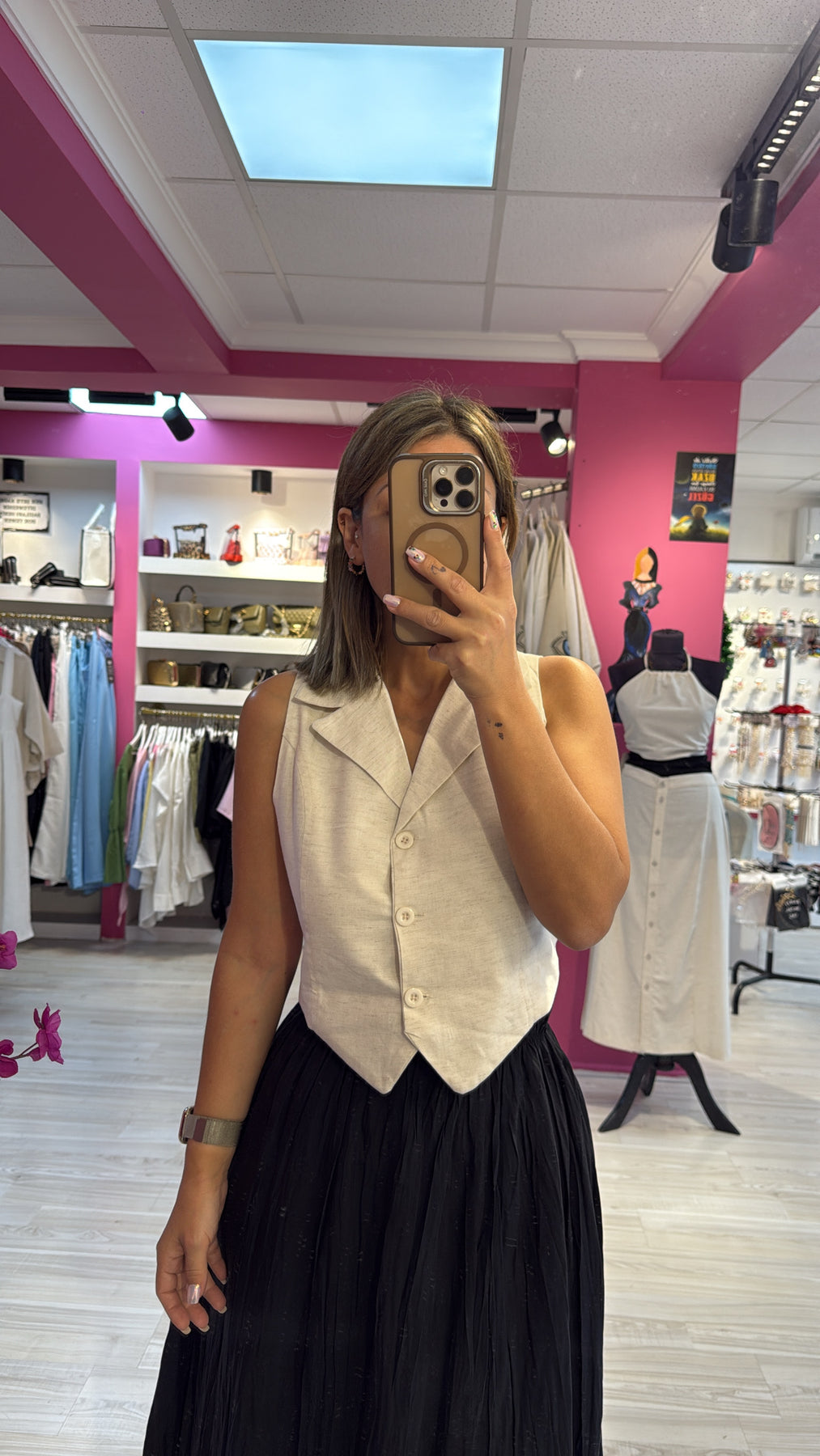 Keten Sırt Detaylı Yelek